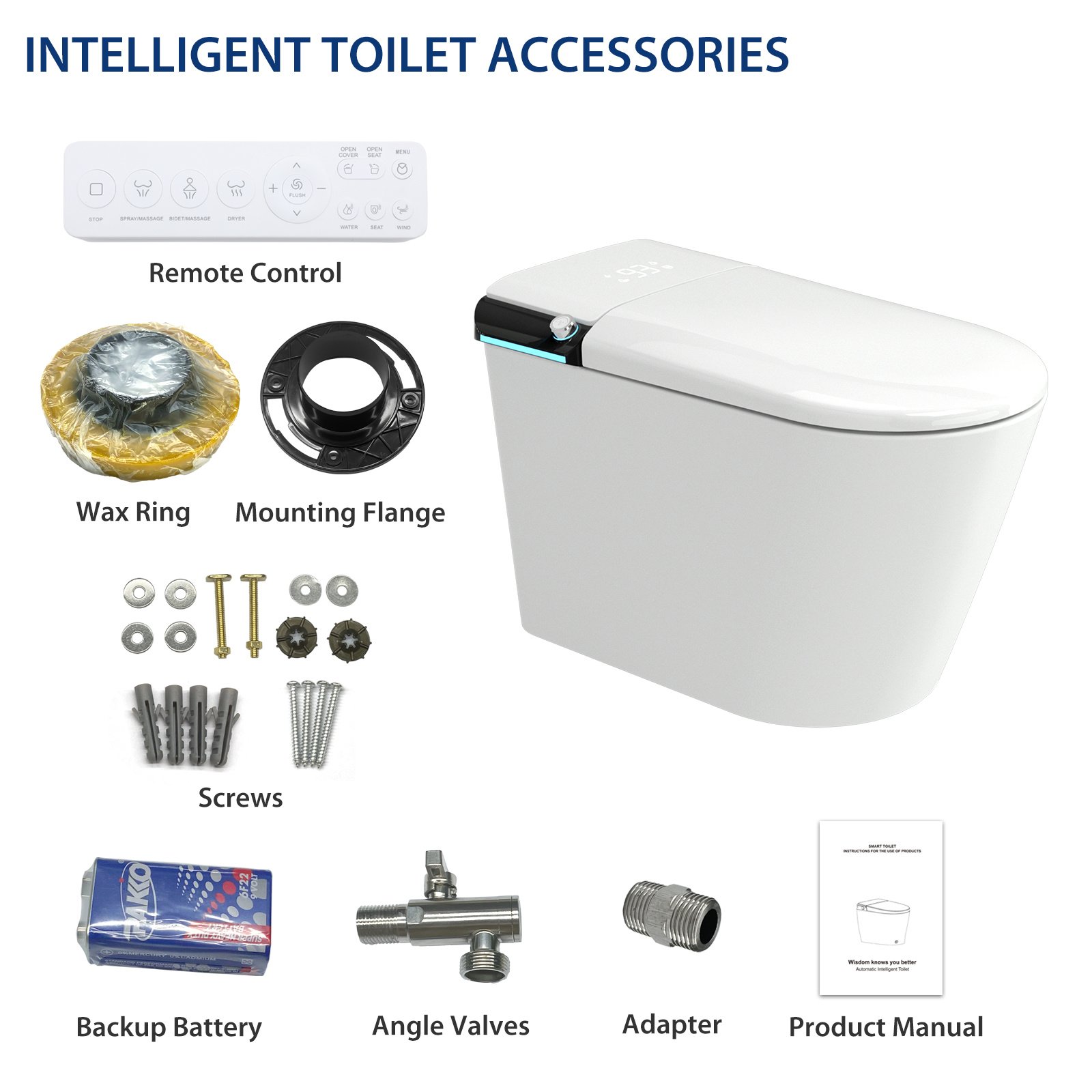 3.The elongated smart toilet can be controlled both by the side knob or the remote control, you can also Flush with Foot Kick, and the one piece smart bidet toilet whit built-in backup battery, so you can flush with the energy of battery during blackout.